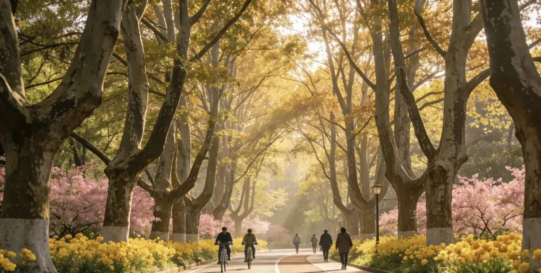 5. 中山陵/美龄宫:梧桐大道+沿途花海,骑行散步都超舒服
