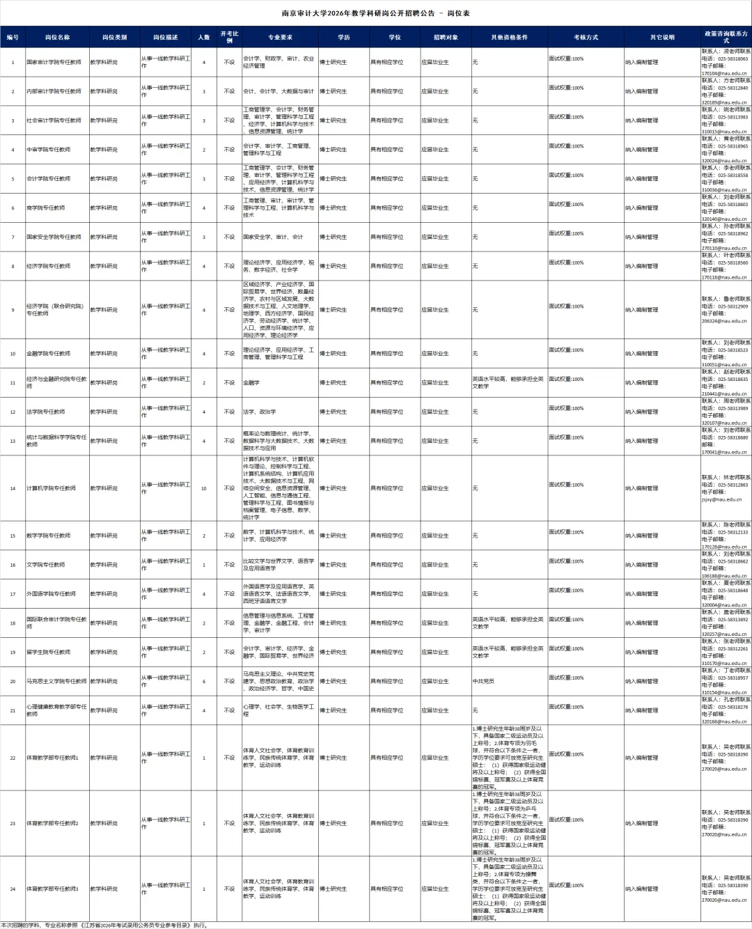 附件:南京审计大学2026年教学科研岗公开招聘公告-岗位表.xlsx