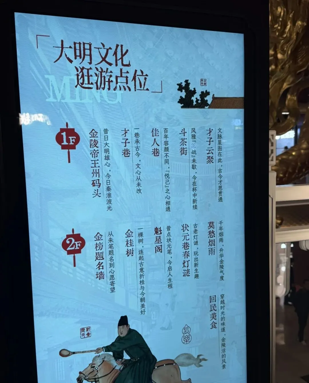 项目以“明代书生泛舟赴考”为故事主线,从一层渡口启程,经魁星阁祈梦、跨龙门桥鱼跃,至金陵宫演艺空间及五楼屋顶花园,完整串联起赴举、殿试、金榜题名的文化动线。