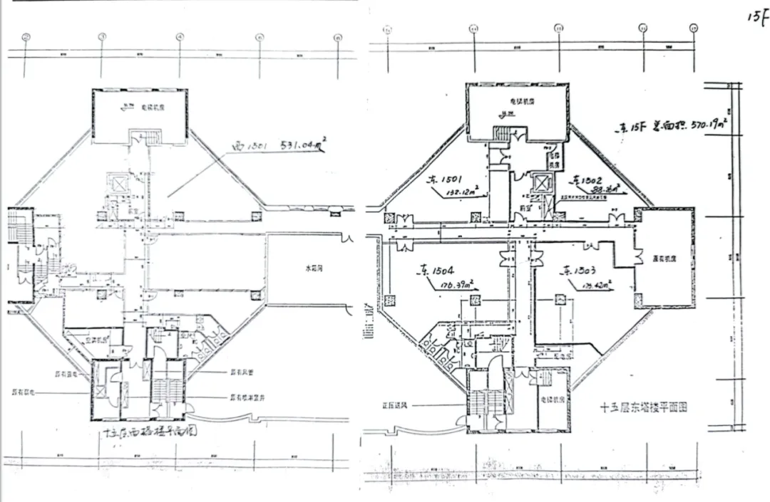 东塔(15-18楼),面积1931.03平米。15楼四本证,16楼17楼各五本证,18楼两本证。15层为大楼设备间和安全通道,也可连通东西塔楼。
