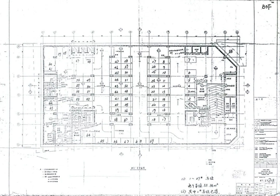 B3地下车位68个,每个车位55.86平米,总面积3798,48平米。