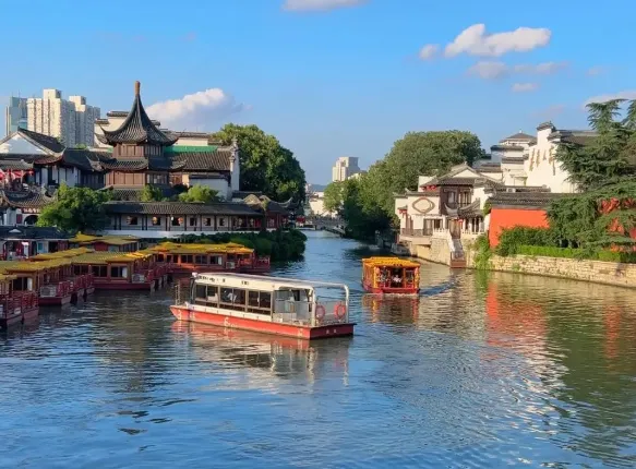 游览:【秦淮河夫子庙商业街5A】(自由活动,无导游陪同,游览时间不少于40分钟)看秦淮河两岸风光,感受旧时“江南佳丽地、金陵帝王洲”的气势,可自费品尝特色小吃(鸭血粉丝等);
