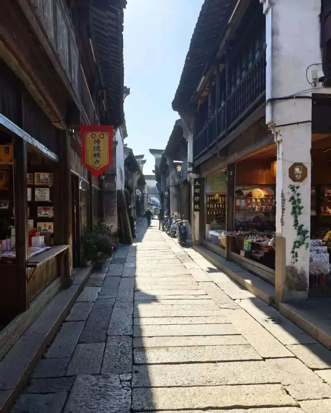 狭窄的老街,店铺面对面地开着,近在咫尺,喊一声的话,声音会在几间店面间响起,电瓶车停放有序,现代气息与古老建筑交织在一起,构成了一幅时代画卷。