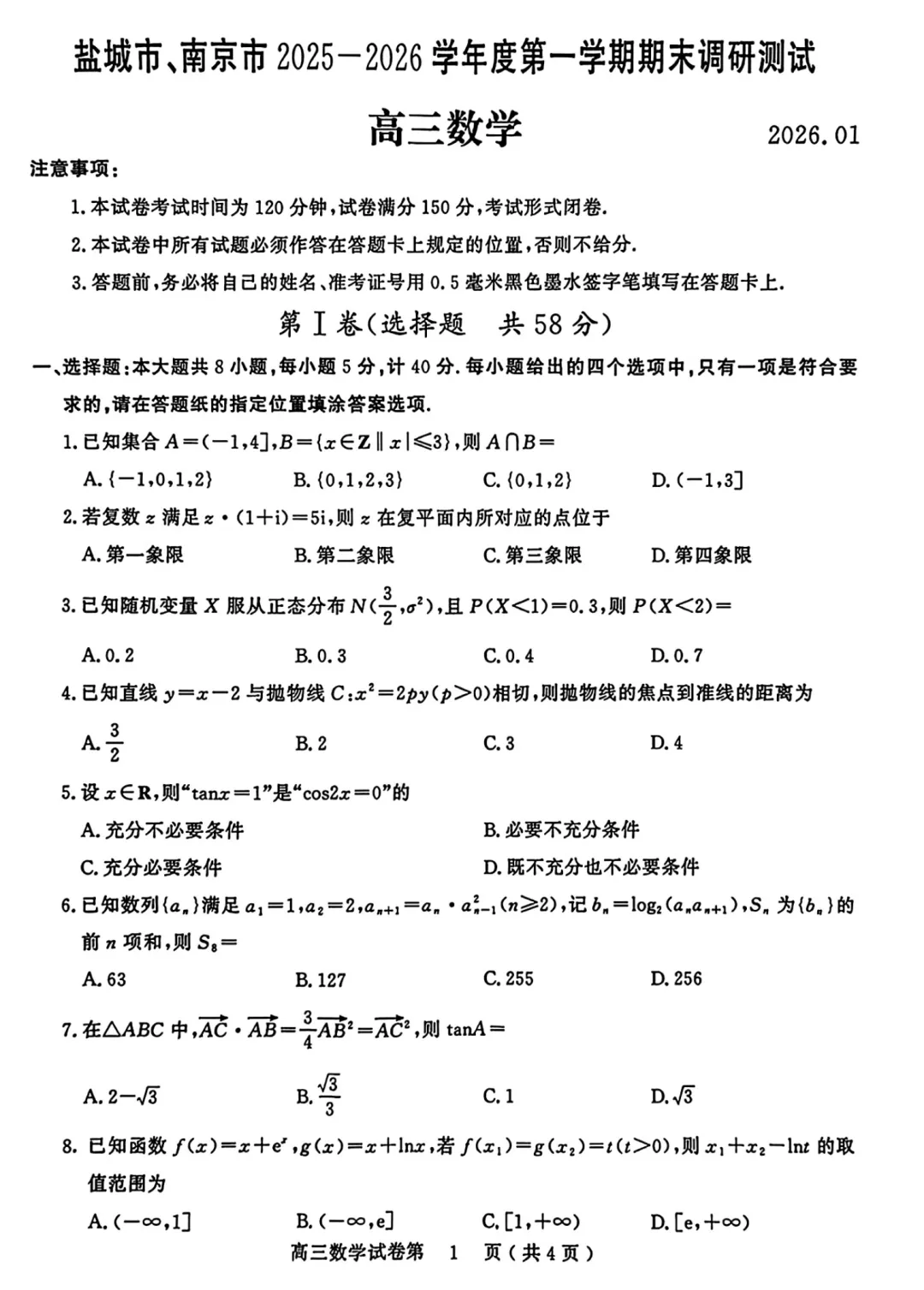 103.2026届江苏南京、镇江、徐州联盟试卷及逐题解析(2025.10)