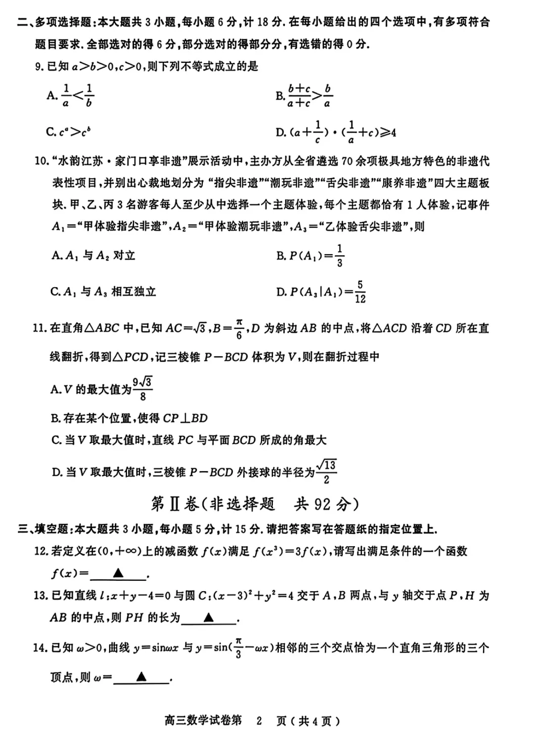 159.2026届江苏五市联考高三数学试卷及逐题解析(2025.12)