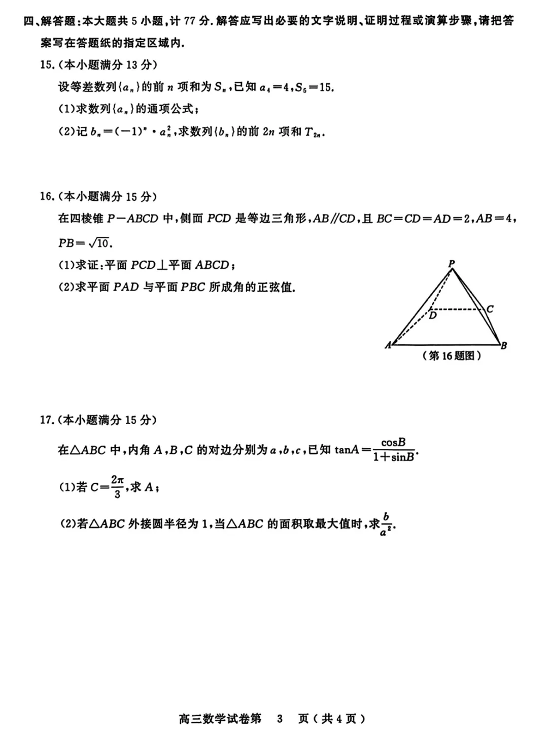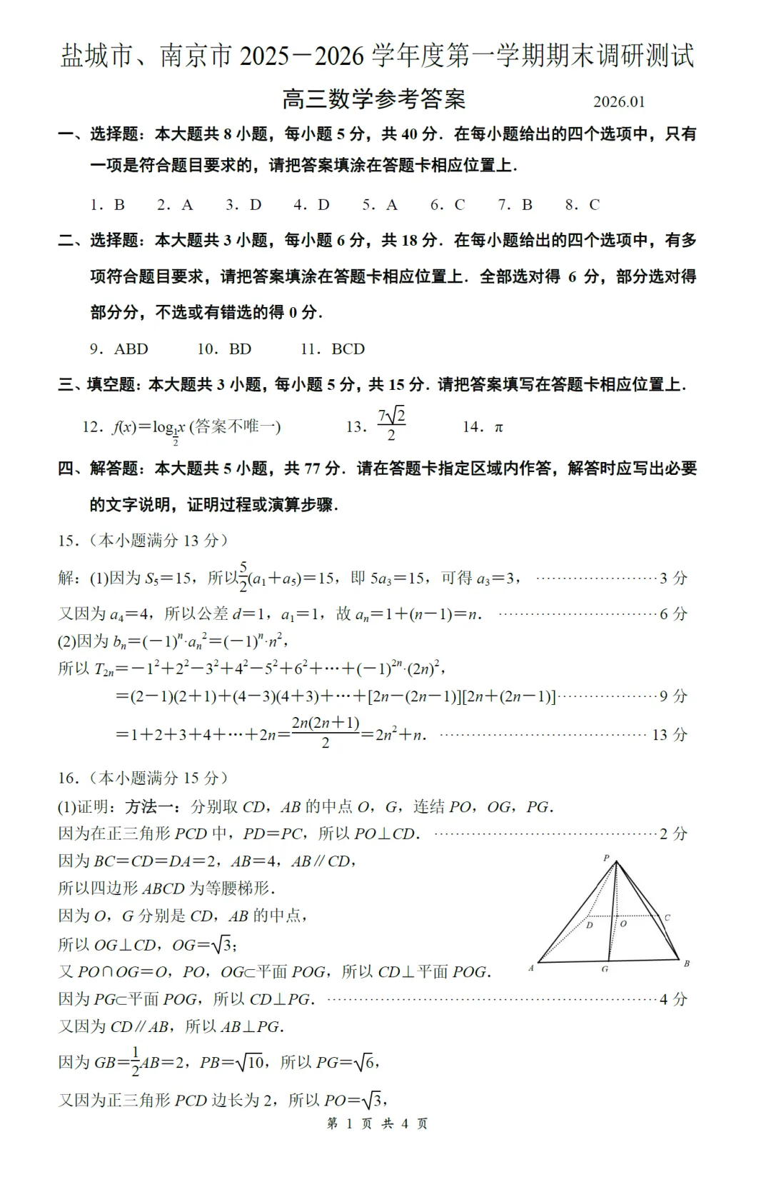 175.2026届江苏省扬州市高三期末考数学试卷及逐题解析(2026.1)