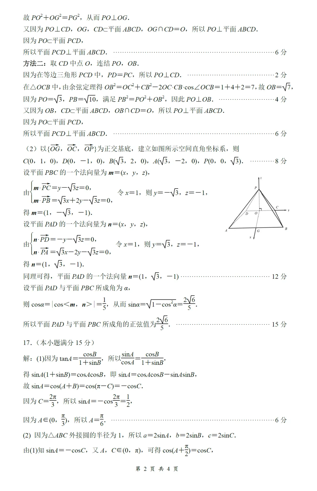145.2026届江西省萍乡市12月高三数学试卷及逐题解析(2025.12)