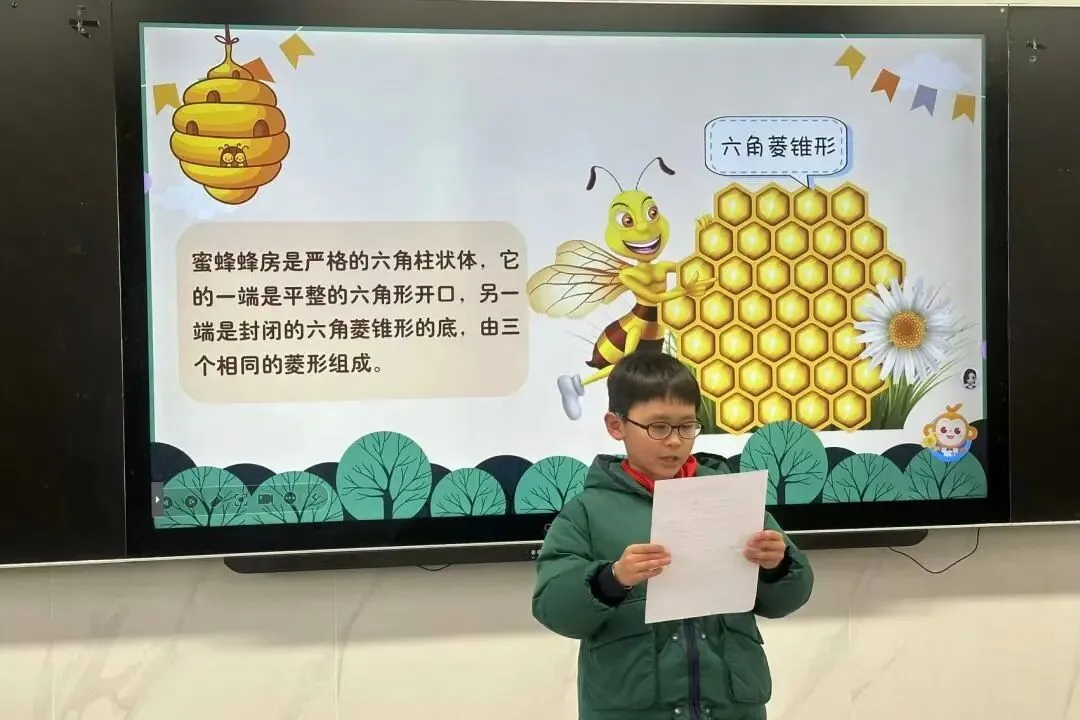短短三分钟,蕴藏大精彩。一、二年级的孩子们用清脆悦耳的嗓音,诵读数字童谣与数学儿歌,在朗朗韵律中感受数学之趣;三、四年级的学子们自信走上讲台,讲述传统数学小故事,分享民俗里的数学谚语;五、六年级的同学们大胆挑战古代数学趣题,探寻数学家与传统文化的奇妙联结。