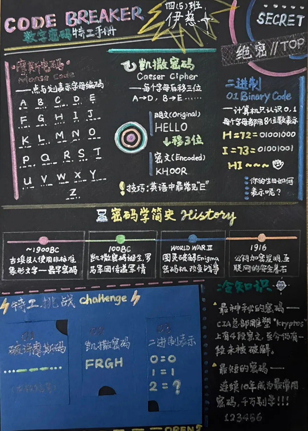 探索生活中的数字编码(身份证、邮编、学号),学习简单加密知识,用手抄报展现数字的秘密与用途。