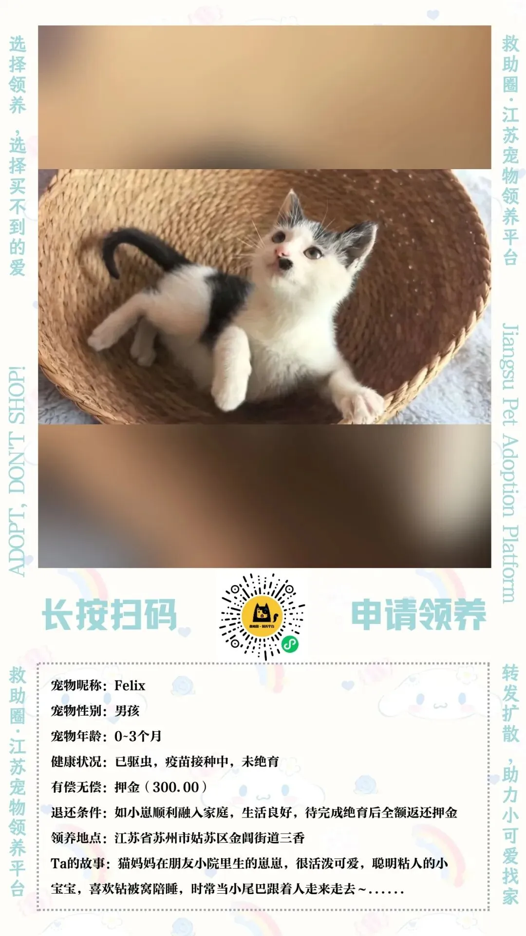 *注:以下领养须知为平台意见仅供参考,具体领养要求依据送养人而定。