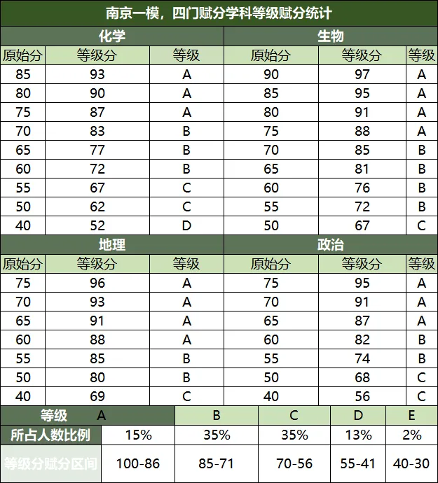 南京赋分统计
