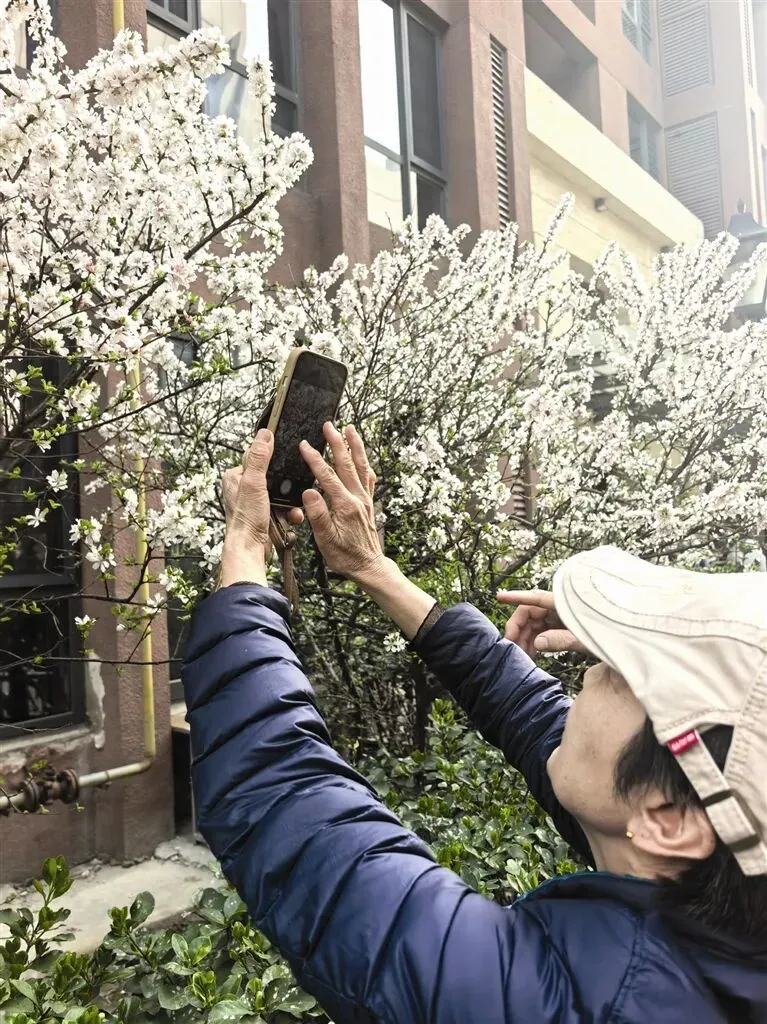 桃花的芬芳不只萦绕在小区里。在南京路社区的护栏外,园林部门种植的海棠、紫叶李、榆叶梅也正在热烈绽放。居民张士华和老同事何一心,指着绽放的紫叶李、榆叶梅说:“这花开得娇艳、热烈,和桃花的花色差不多。如果不是网格员在线上科普,我们还以为是桃花呢。赏花的同时还长了见识。”