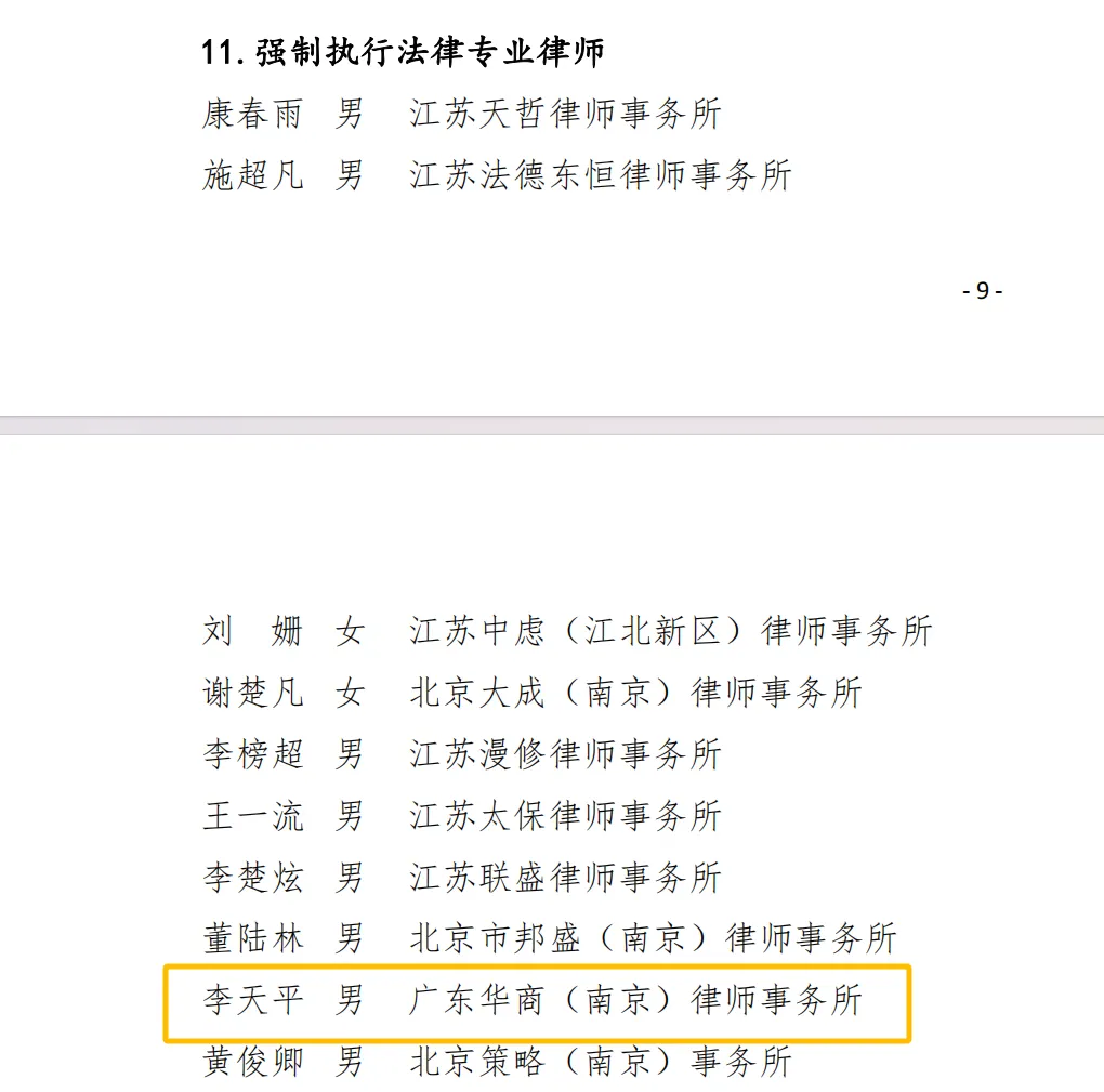 李天平律师,华商(南京)律师事务所合伙人。长期服务于大型金融机构及知名企业,客户包括江苏紫金农村商业银行股份有限公司、中国银行股份有限公司江苏省分行及多家资产管理公司。自2013年起,他代理的金融机构不良资产诉讼、催收与执行案件总标的额已超过10亿元人民币,案件总量近千件,具备为客户提供从贷后管理到诉讼、执行乃至资产处置的全流程法律服务能力。