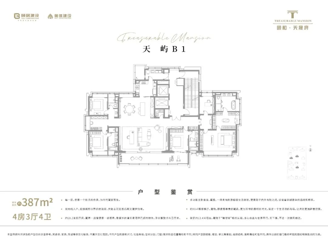 天晟府的标准层户型只有两种,一种是建面约269平,另一种是建面约387平,总价1650万起步!