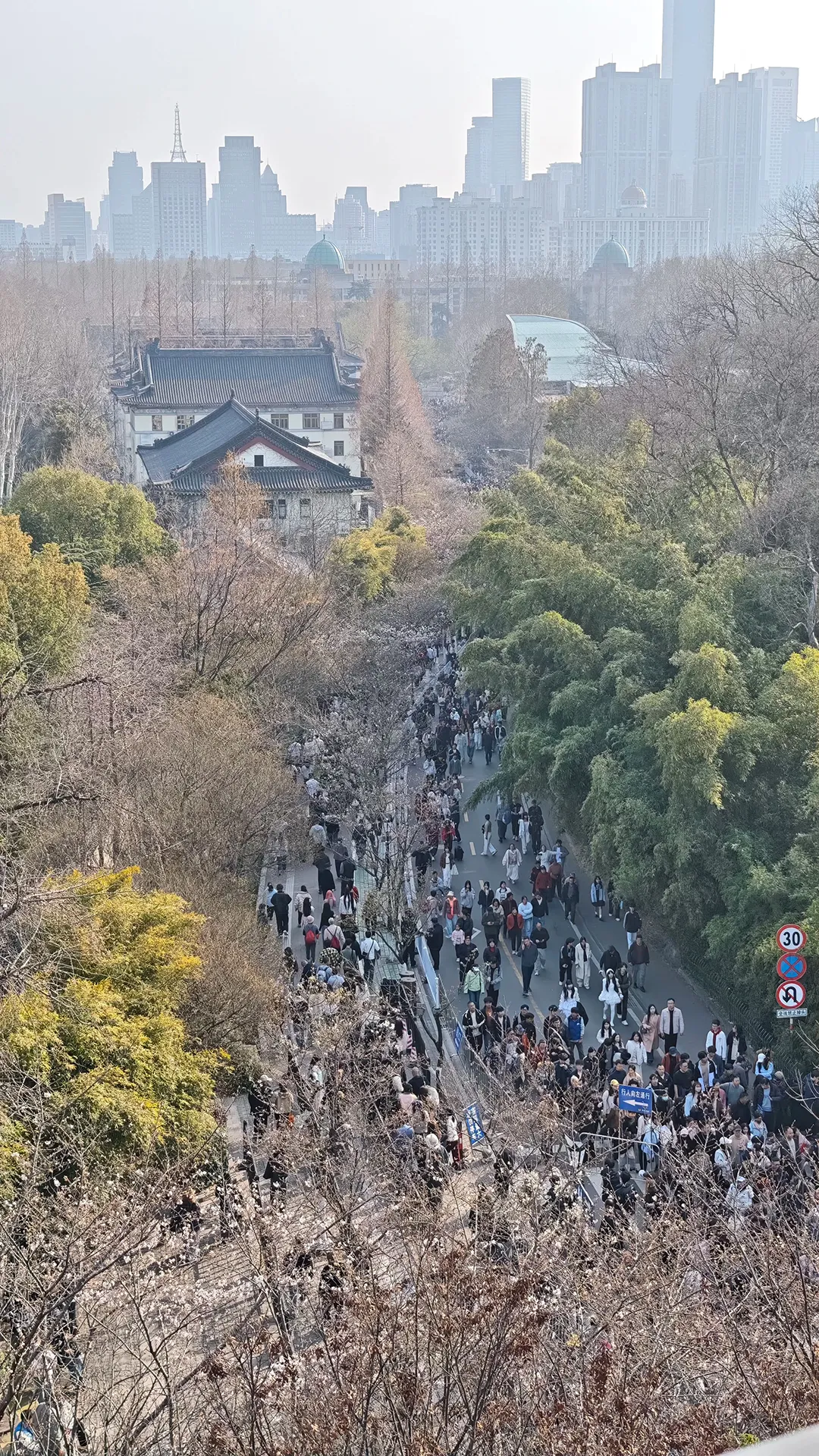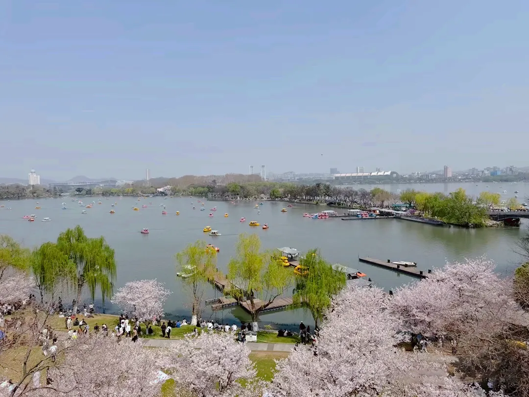 ●老法师:天选机位啊!站在六百年城墙上,左手南京城天际线,右手玄武湖春天,低头就是大片樱花海洋,发朋友圈赢麻了。