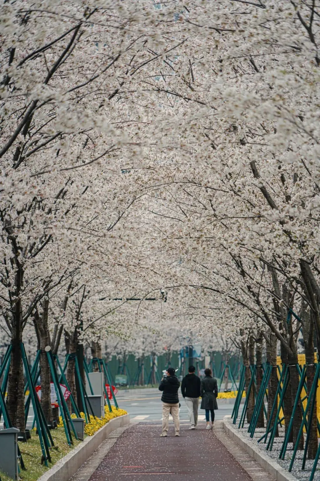 ●江东中路上的郁金香、江心洲的雪柳、凤滁路的樱花、进香河的紫叶李、弘景大道上的二月兰、海棠花……一抬头就拥有了整个春天。
