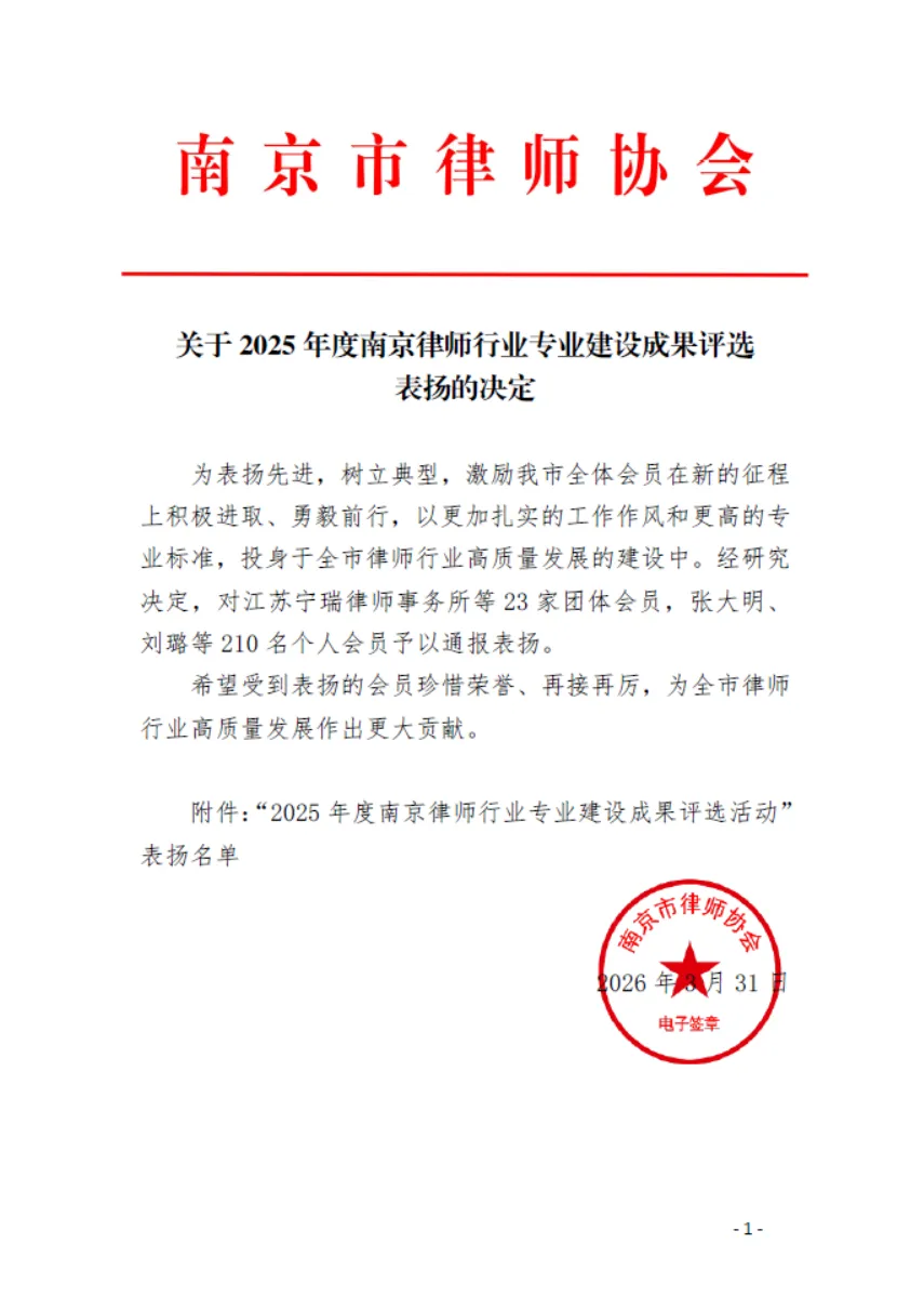 2025年,被评为江苏省2024年度优秀青年专利代理师;