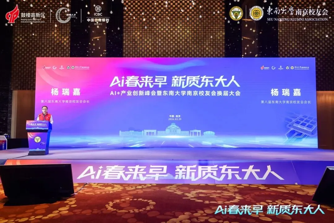新当选的第八届会长杨瑞嘉发表就职讲话,向母校、第七届理事会及全体校友的信任与支持致以诚挚感谢。他表示,新一届理事会将锚定三大核心方向发力:筑牢校友服务根基,升级全域保障体系;深化校地校企链接,打通成果转化通道;做优双创孵化平台,升级 “发现东大独角兽” 核心品牌 IP。他号召全体在宁校友紧抓时代机遇,力争未来五年培育更多行业独角兽与上市企业,以实际行动反哺母校,助力东南大学早日跻身世界一流大学前列。