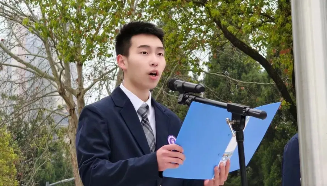随后,学生会主席上台发言。他代表全体学生会成员,感谢学校与老师的信任,并表示将恪尽职守、服务同学、认真履职,不辜负学校的期望。
