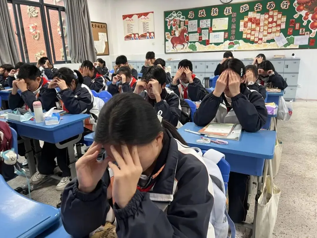 将眼保健操纳入日常校园作息管理,班主任与任课老师全程监督指导,及时纠正学生按压穴位、做操姿势,确保动作规范到位,通过定时放松眼部肌肉,缓解课堂用眼疲劳,减少近视发生和增长的风险,让科学护眼成为学生每日校园生活的必修课,融入日常学习点滴。