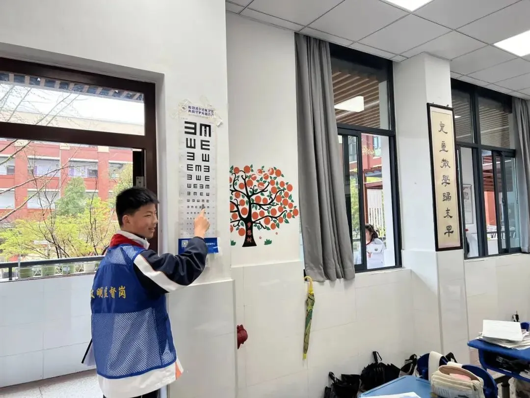 为保障视力监测工作有序开展,学校严格落实标准配置要求,为每一个班级规范张贴标准对数视力表,确保张贴位置醒目、光线适宜,为后续班级常态化视力自查、学生实时关注自身视力状况打下坚实硬件基础。