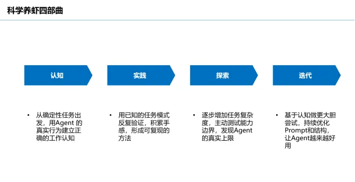 在分享的最后,徐杨给出了“科学养虾”的四部曲,这不仅是技术指南,更是能力升级的路径:
