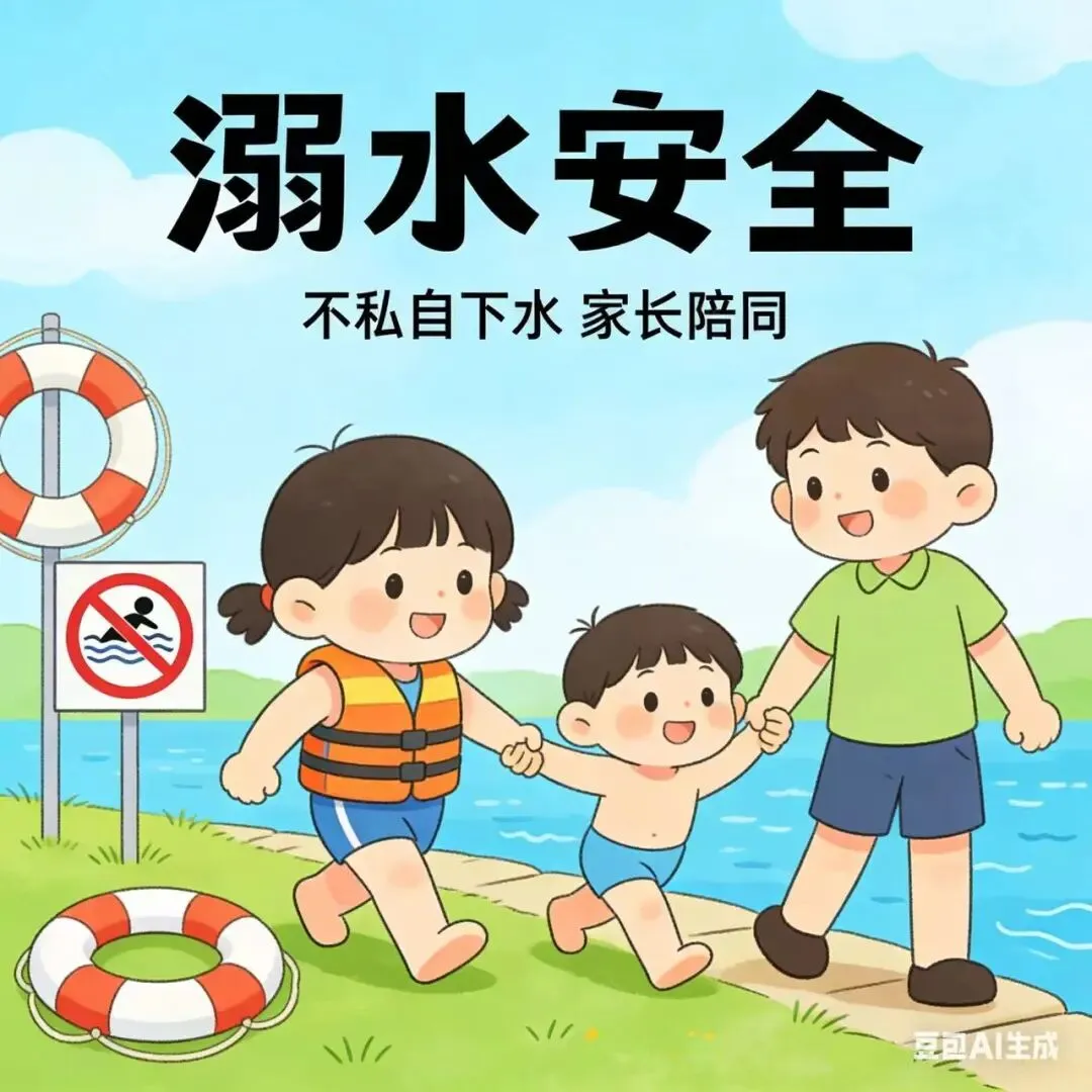 请勿带宝贝靠近无安全防护的水域,不私自玩水、戏水,远离河边、水沟、小溪等危险区域,时刻盯紧宝贝,杜绝溺水隐患。