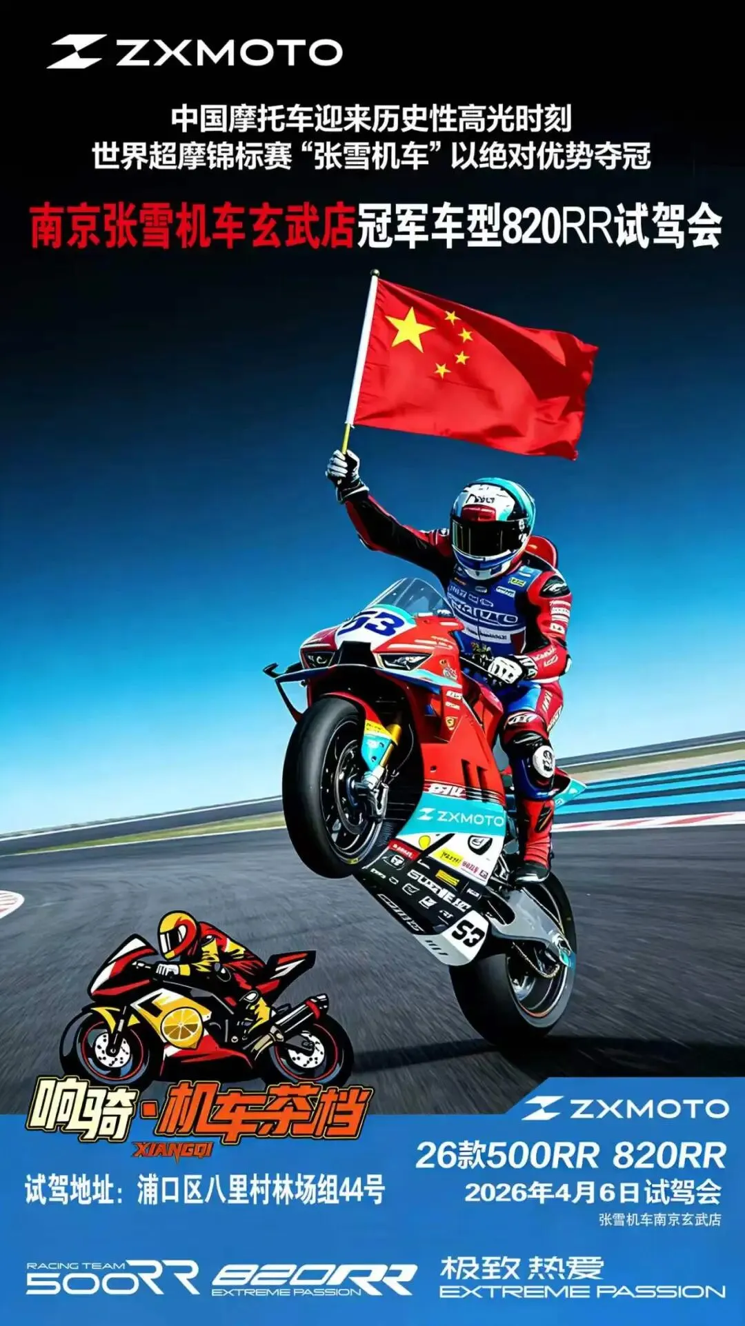 这一次,我们不必隔着屏幕热血沸腾,不必仰望遥远的葡萄牙赛道。4月6日,张雪机车南京玄武店,把顶级试驾会搬进浦口响堂,你可以亲自跨上冠军民用版820RR,把赛道基因,骑进南京最美的山野里。