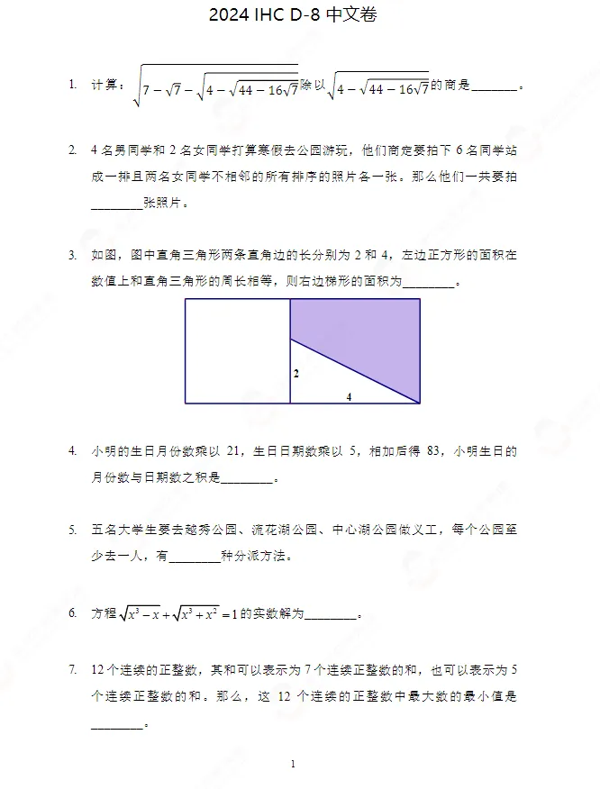 希望杯题量及总分每年也有些小变化,有25题,满分100的情况;也有30题,满分150;往年有过前10题送分题,1题1分,后20题拔高题,1题5分,后来好像就取消了送分题。