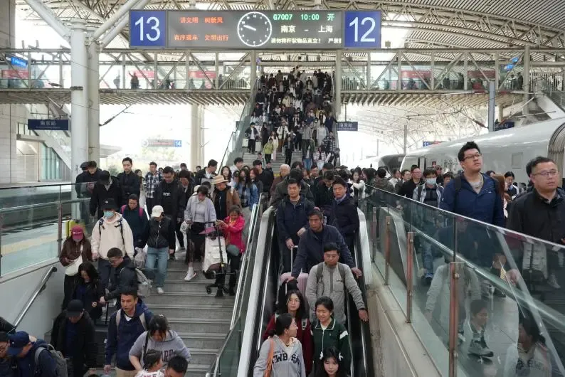 今天上午,铁路南京站迎来第一波出行高峰,全天预计发送旅客35.5万人次,较2025年增幅58.8%。其中儿童票已发售5.3万张,较去年同期增加5.15万人,往北京、西安、长沙、福州、南昌、济南、郑州等方向儿童出行增幅明显,有较多的旅游研学团体客流。