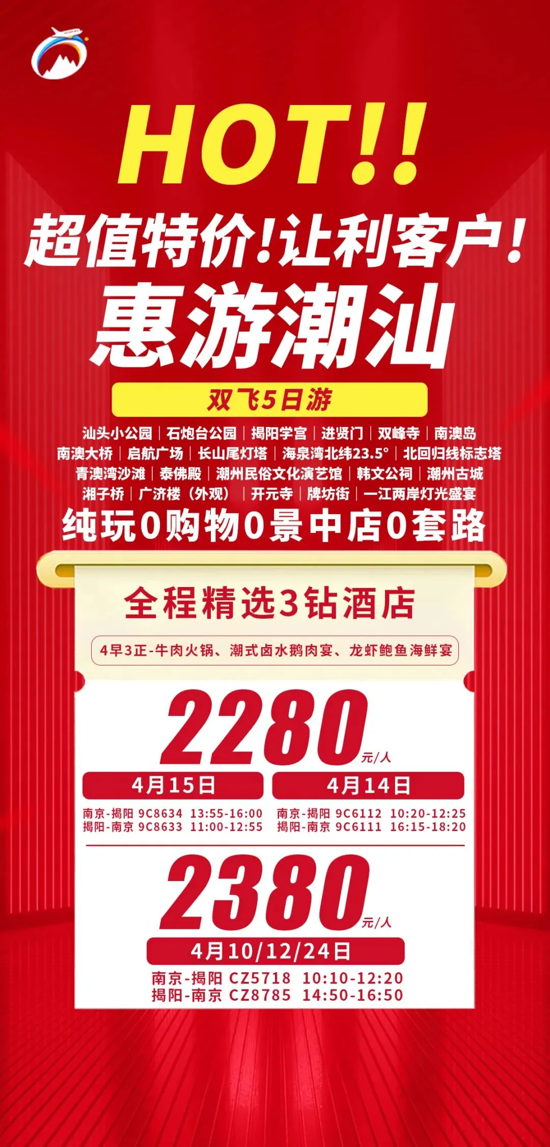 [庆祝][庆祝]【惠游潮汕】-大潮归来双飞5日