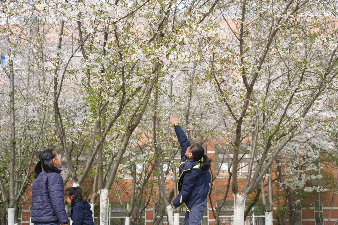 春日的仙外校园,繁花似锦、生机盎然,成为孩子们亲近自然的最佳课堂。
