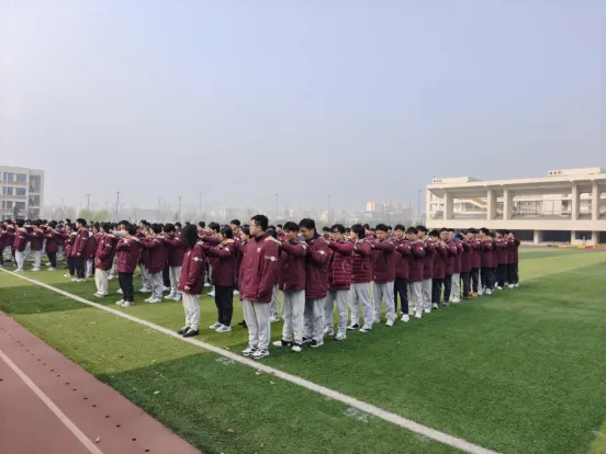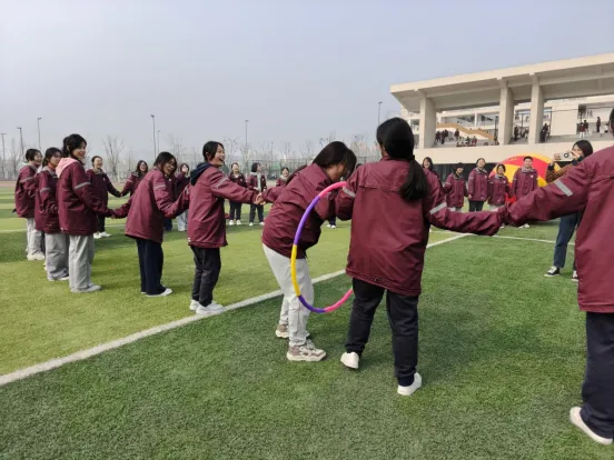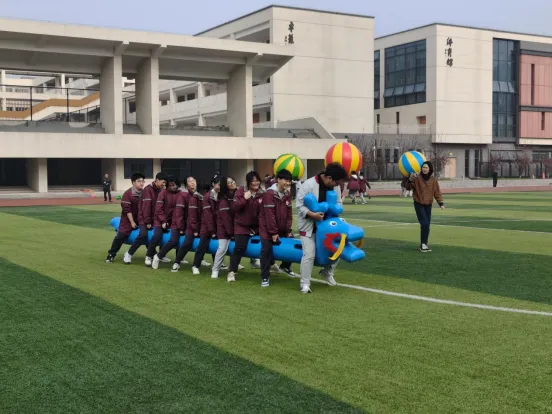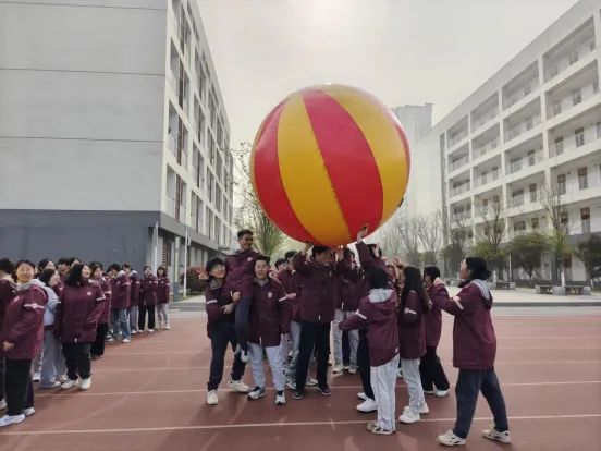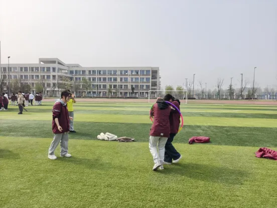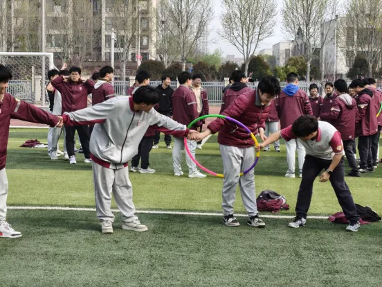 活动伊始,学生发展部副主任、体育老师仇宗仁带领全体同学开展热身活动。春日的操场上,轻松欢快的节奏、简单有趣的互动,迅速打破了同学们的紧张与拘谨,现场氛围瞬间活跃起来。大家舒展身心、积极配合,在明媚春光里快速融入活动氛围,为后续团体游戏的顺利开展做好了充分准备。