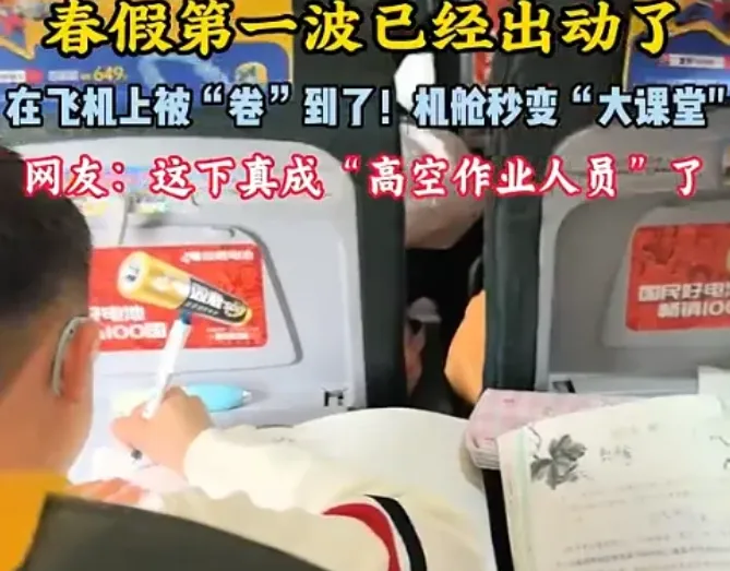 不少孩子在飞机上写作业,机场大厅、飞机舱秒变“课堂”,网友戏称,这下真成了