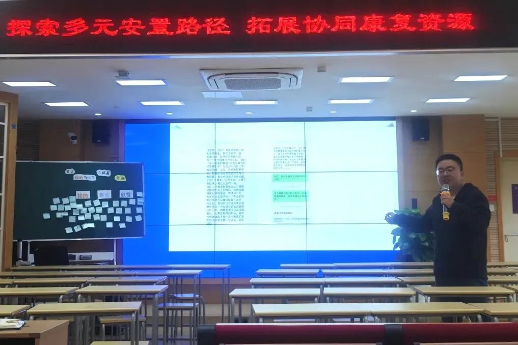 同时,项主任还介绍了鼓楼区融合教育的优质资源布局,包括定点康复机构的申请流程、康复救助政策标准,以及学校与康复机构“教康协同”的合作模式——通过签订康教融合服务协议,实现学校系统文化教学、融合社交环境的优势,与康复机构专业诊断评估、个性化康复训练的优势互补,打造“学校+机构+家庭”的三方协同支持体系。