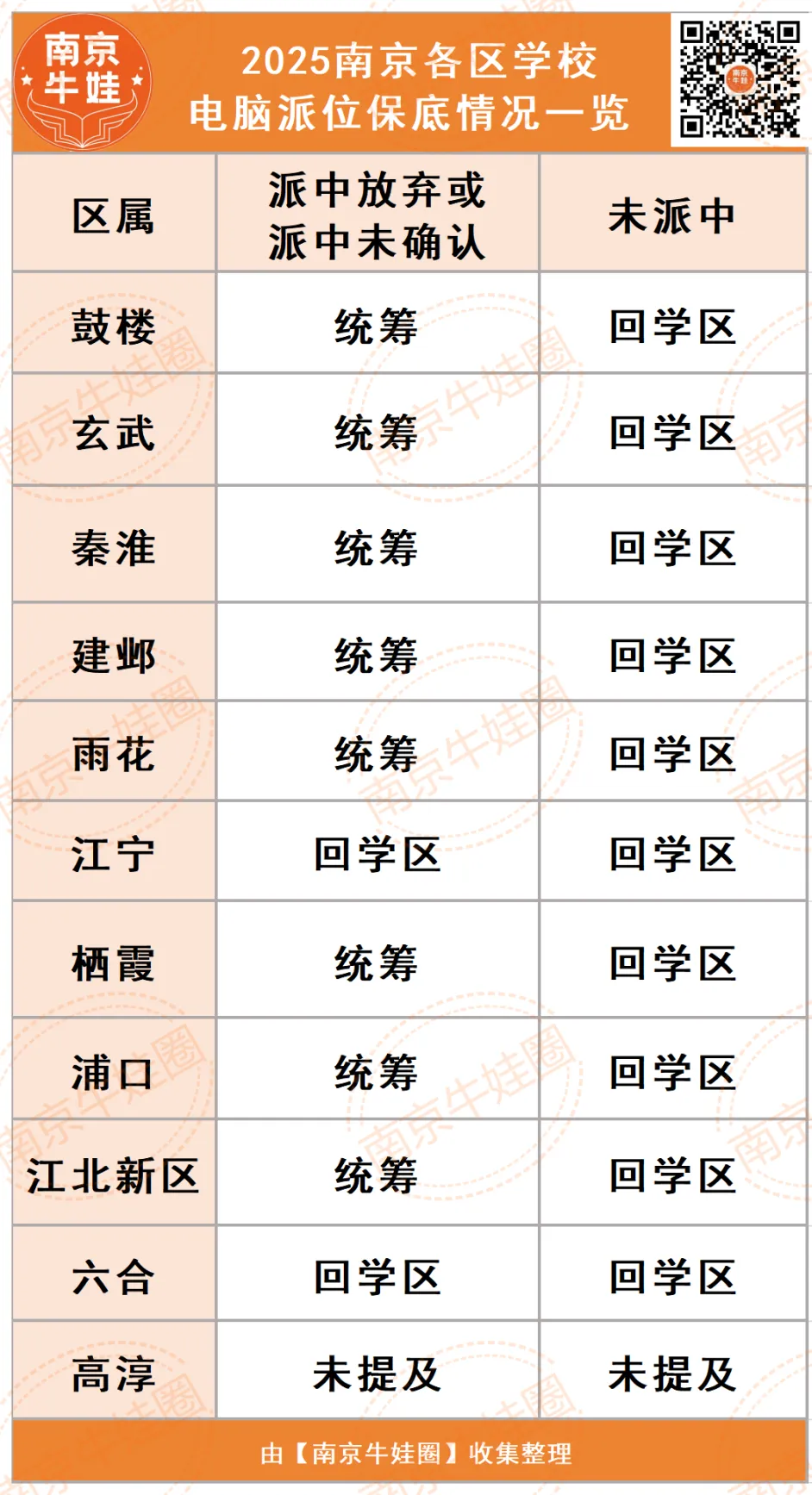 注意:如果摇号摇中了又放弃,原施教区学位不再保留,将由区教育局统筹安排入学!整理了南京各区电脑派位保底情况,家长们可以仔细阅读。