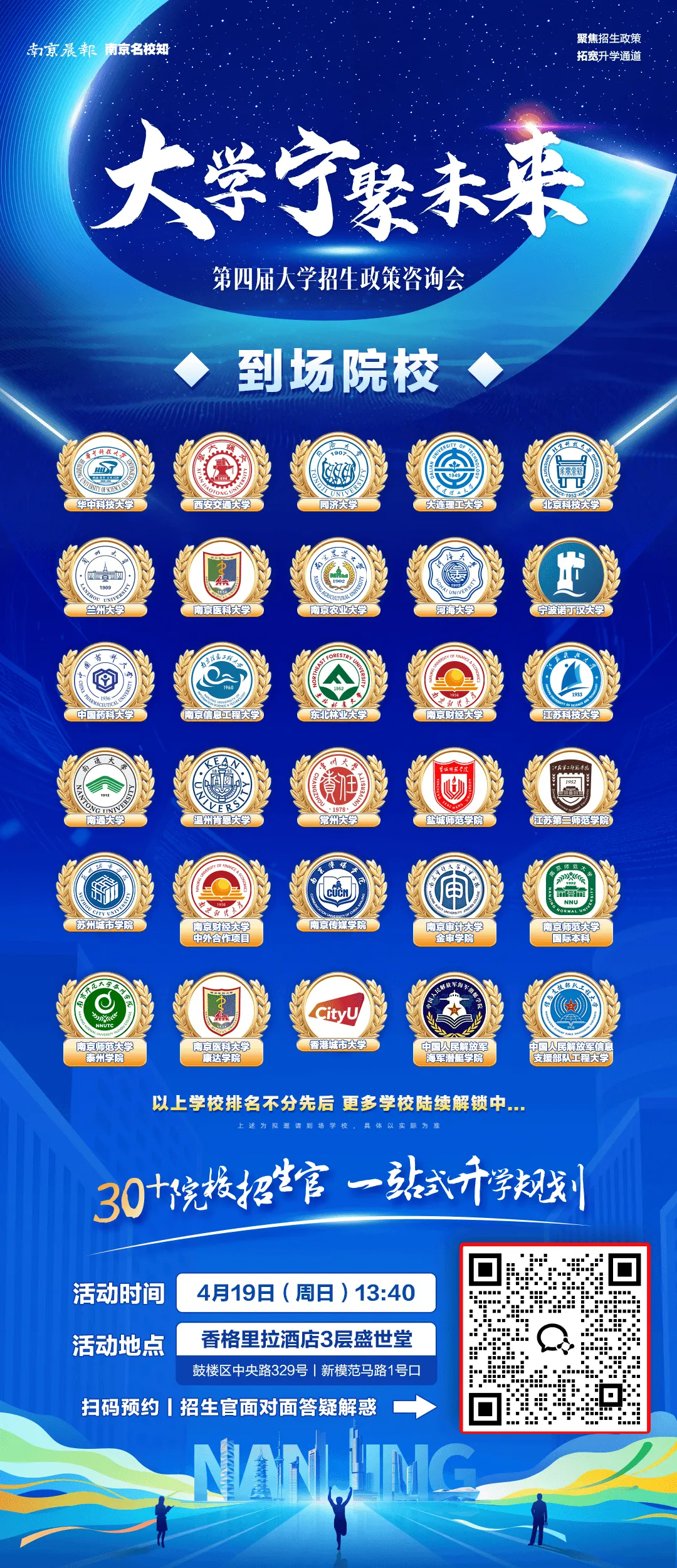 ➡️预约入口:南京信息工程大学公众号预约,可任选以下校门(东苑东门、东苑南门、东苑北门、西苑南门、西苑北门),步行入校。