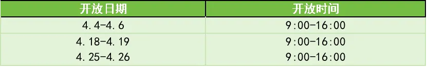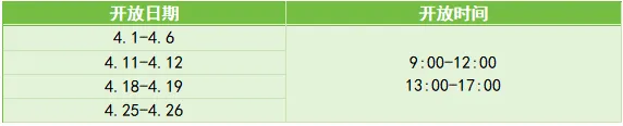 ➡️开放时间:4月1日—4月30日 9:00-17:00