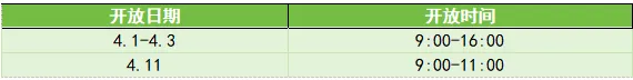 开放时间:4月2日 9:00—16:00