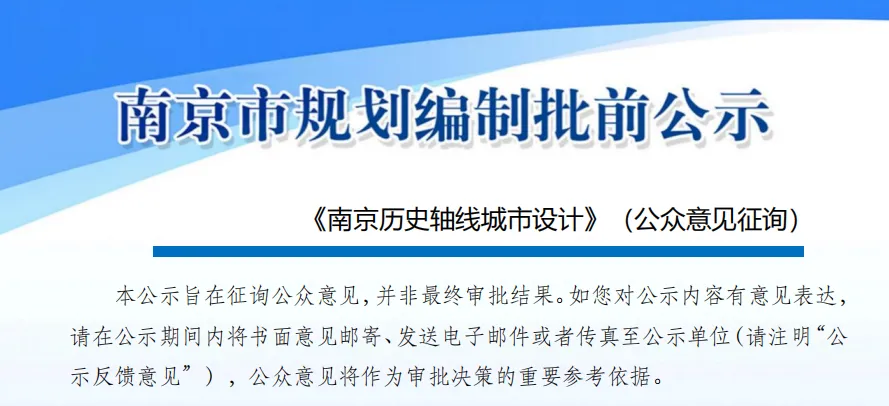 近日,本台记者从南京市规划和自然资源局获悉,《南京历史轴线城市设计》已正式启动批前公示,面向社会广泛征询公众意见。此次设计在原有三条历史轴线基础上,提出“三轴一线”的格局,细化轴线沿线设计与管控要求,结合南京老城更新提升沿线空间品质,让千年古都的历史焕发新活力。