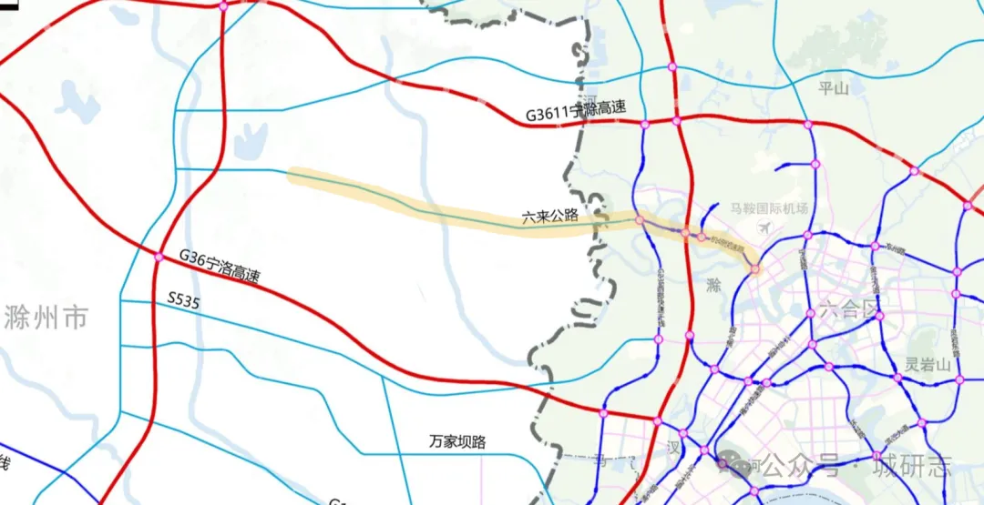 跳出六合本地,这张交通网的意义更加凸显。在地理上,六合一直是南京对接苏北和安徽的“北大门”。G36宁洛高速的拥堵,每一个长假都在证明这条通道的繁忙与重要。新的规划中,一条向西连接规划六来公路的通道被明确,这相当于在已有的宁洛、宁滁高速之外,又增加了一个分流选项。