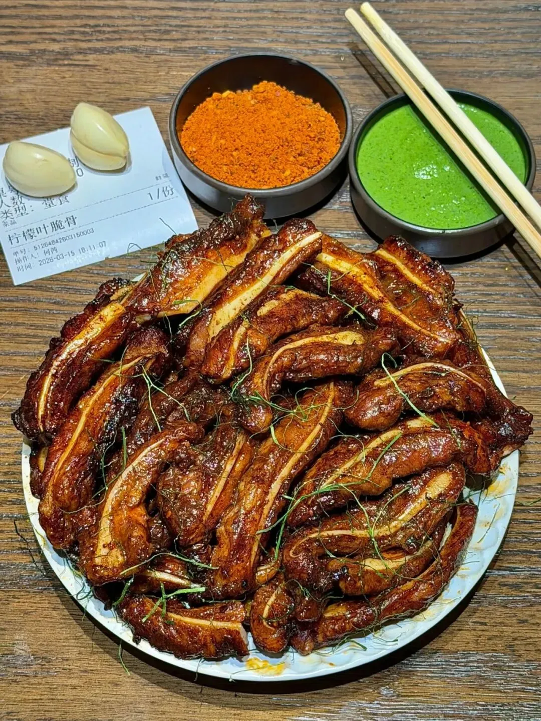 脆骨咬起来咯吱带劲,柠檬叶的清香完美中和了油腻,越吃越上头,解腻又开胃,妥妥的下酒神器。