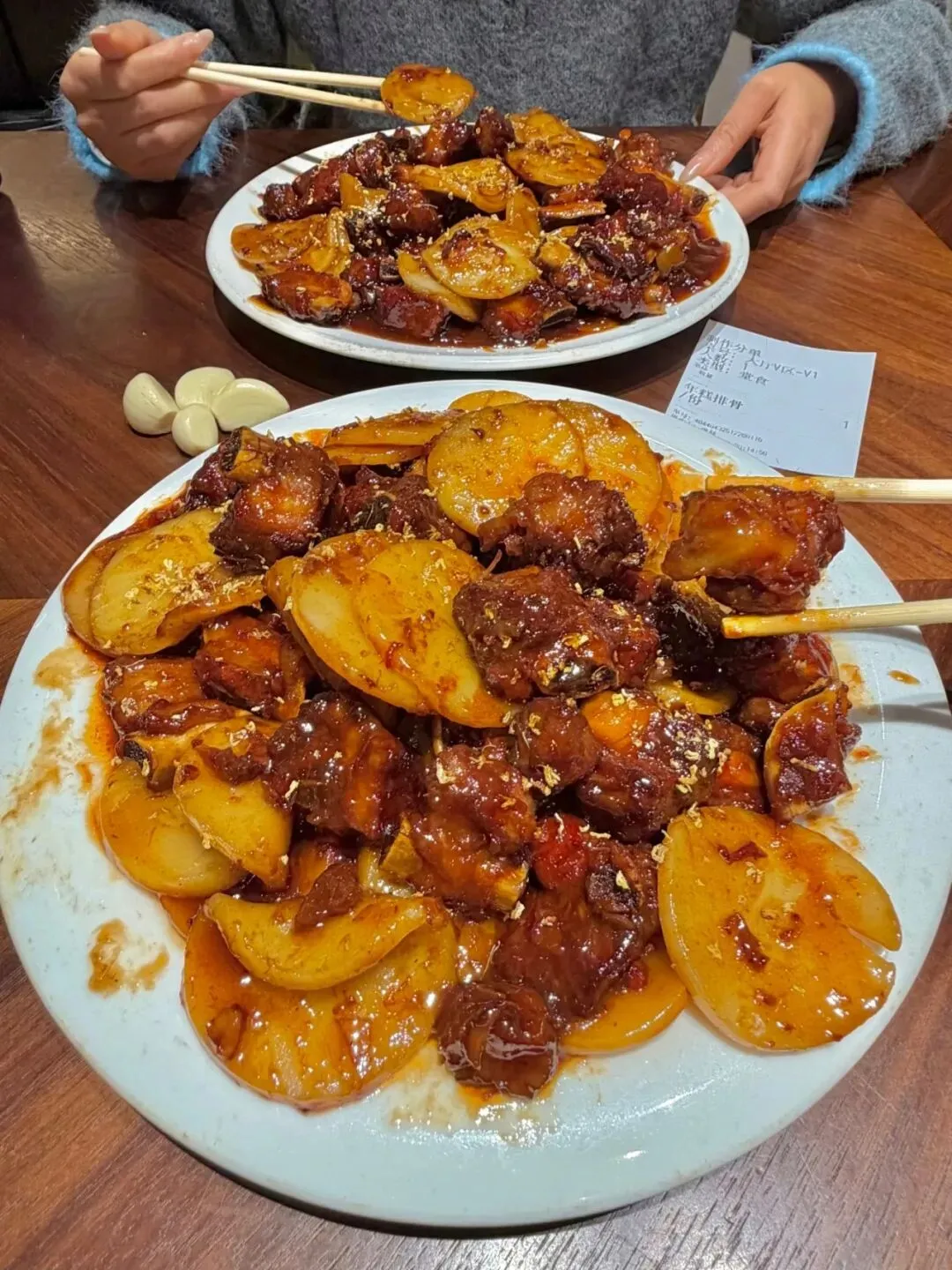 排骨炖得软烂入味,一抿就脱骨,年糕吸饱了浓郁的肉汁,软糯拉丝,刚上桌就被抢空,妥妥的桌桌必点!