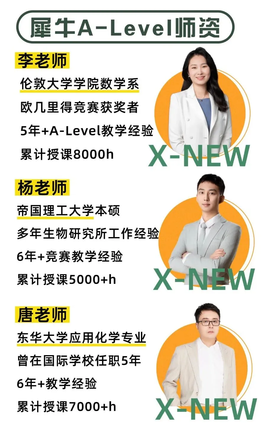 犀牛Alevel授课老师均有多年授课经验,熟知Alevel学科考点和解题技巧,授课风格各异,可根据孩子喜欢的风格挑选老师。