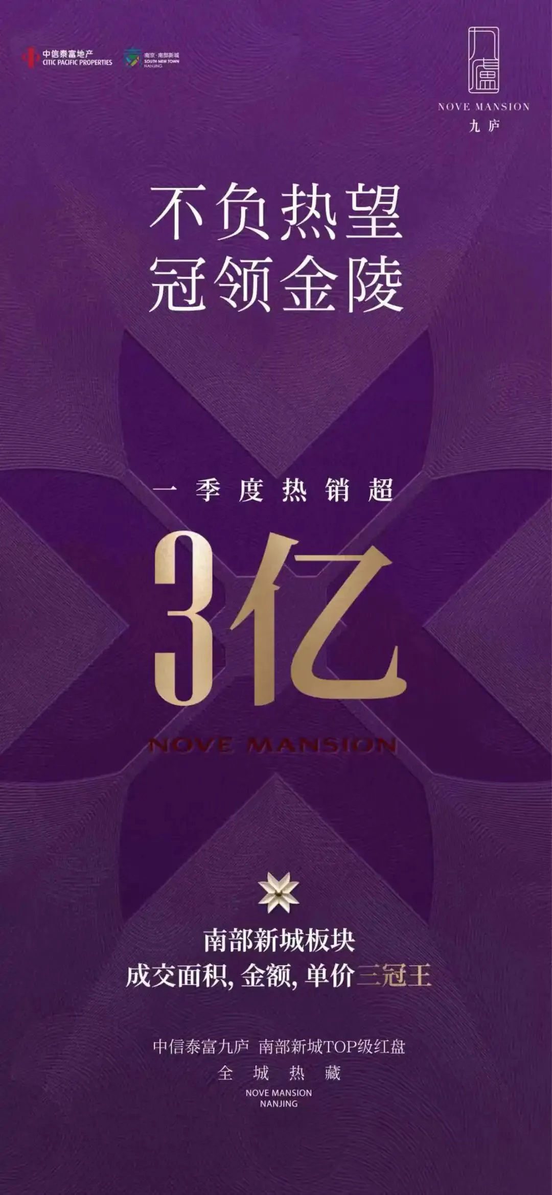 冰山数据显示,南京3月份新房网签6096套,环比暴涨208%,另外据悉3月份成交量在2135套,较之二手房明显回涨;二手房网签8900套,其中单日最高网签482套,创今年新高!14007套的成交量更是狂涨225%,是2月份的3倍还多!这也意味着,南京马年“金三”不只是小阳春,而是迎来真正意义上的“龙抬头”,新房二手房共计卖破1.6万套,创年内新高!市场活跃度显著回升。这种热度更体现在各大热销楼盘,随着一季度的结束,开发商纷纷亮出热绩秀肌肉,即使数据统计的来源不一,但热销红盘能在不同的领域和板块拿下销冠、板块销冠,月度销冠、季度销冠……单从这些喜庆的“王”之海报来看,这一波行情,南京稳了。南京瑞玺,3月份蝉联,荣获一季度全市1000万元以上面积、套数、金额、均价TOP1作为南京河西中的超级豪宅,瑞玺拥有独立金字塔塔尖的底气,7万/㎡的销许价、200㎡以上的大平层豪宅,但能同时走出独立行情将销售套数和销售面积乃至销售金额也推至南京第一,就是瑞玺的实力所在了。至少目前南京1000万以上项目里,瑞玺的存在感还是非常强的。中信泰富·九庐,销售破3亿,再领南部新城板块成交面积、金额、单价三冠王:九庐是中信泰富地产在南京开发的第一个“ARC艺术奢宅”,加上准现房销售,在南部新城乃至南京城都自有其稀缺性在。但难能可贵的是,在南京楼市诸多改善选择之下,这个2024年上市之后一路长虹,在快要进入收官倒计时的时候仍能傲领南部新城,可见产品的硬核。九庐之后,中信泰富的新盘G86也快要来了,7栋12-17F小高层,今年的南部新城要更热闹了。绿城云庐,荣获2026年一季度城东销售套数/面积/金额TOP1(数据来源:365智库)全国TOP1的绿城出手,在南京自然不俗。云庐又位于紫金山贵脉之上,容积率仅1.05,目前超万方全维实景示范区都已经公开,产品放整个城东区域确实能打。江宁金茂府,垄断南京市一季度总价500万+项目,荣膺三冠王,成交金额、套数、面积TOP1(数据来源:365智库)樾满云川,霸榜南京市一季度成交金额、面积TOP1(数据来源:365智库)东山金茂晓棠,统治江宁区一季度入门级产品(90㎡),夺得三冠王,成交金额、套数、面积TOP1(数据来源:365智库)金茂三盘都在各自的赛道中各领锋芒,难怪有数据显示,江宁3月份每成交2套新房,就有1套来自金茂。金基和绿城两大品牌房企联袂打造的硬核项目,从上市起热度就一直高涨,目前洋房收官在即。中建宁悦府三月鼓楼人气王1-3月鼓楼网签销量TOP1-2