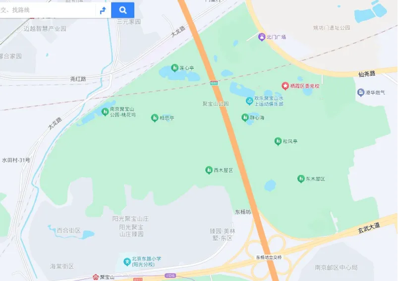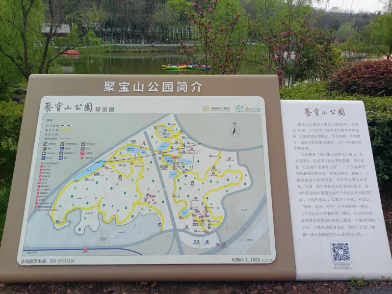 聚宝山公园位于紫金山东北侧,是一座大型城市森林郊野公园,面积约2200亩。绕城公路贯穿公园南北,将其分割为东西两个区域,按以往的地名,西侧才是“聚宝山”,东侧则是“杨坊山”,不论何名,这两座山现统一纳入聚宝山公园。