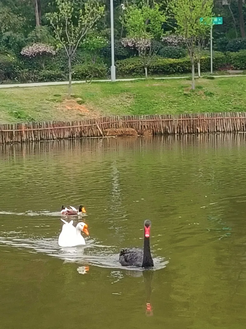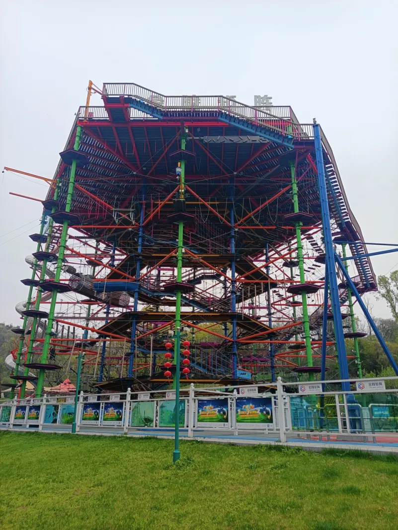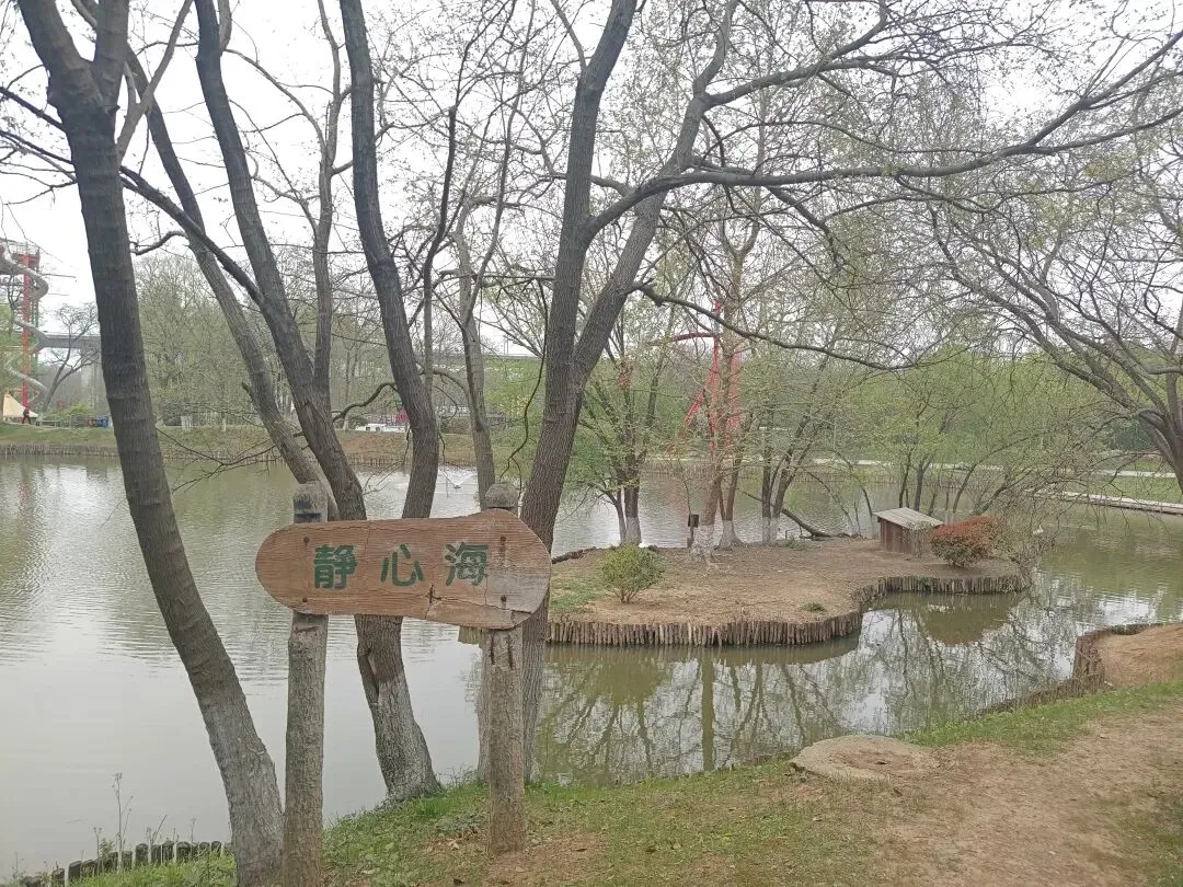 公园有多处入口,我们从玄武大道北侧的主入口进入东园,园内游人不多,园景空旷,虽有些冷清,但却令人怡然!先经杏林湖,再北行绕过小山丘,到静心海,其间有鸭、鹅、黑天鹅,排着队,悠然自得地闲游。继续北行,西侧有个立体的游乐园——金陵矩阵,是南京首个户外轻极限高空绳索攀爬项目,占地约2000平方米,高25米,顶层为700平方米高空景观平台。这种格局和规模立体游乐园,在我有限的经历中并不多见。