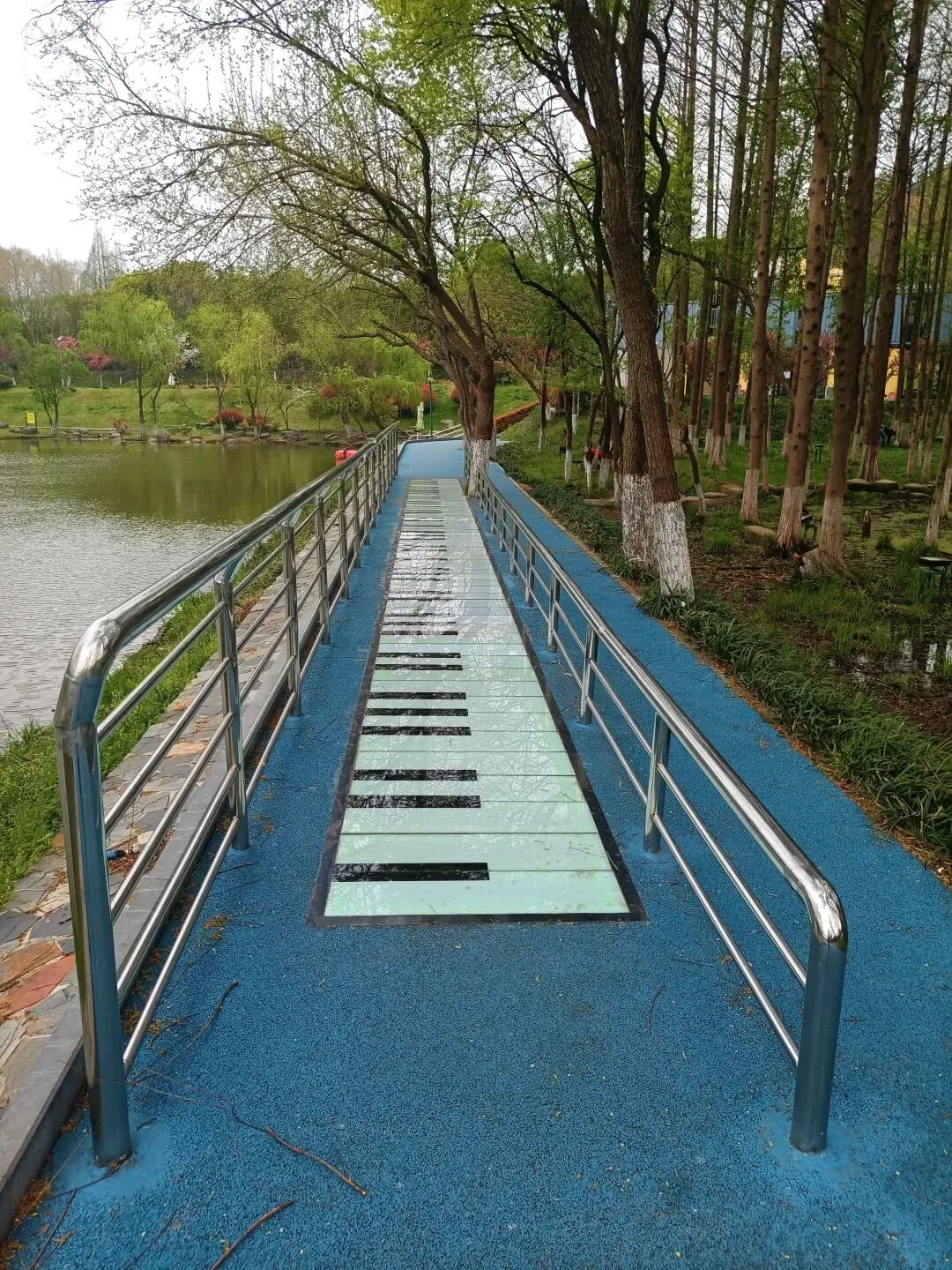 矩阵东面是归居湖,西岸设有观景处,嵌入了一组琴键小路,踏上音阶,对应的声音便响起,不过有些已不出声了。