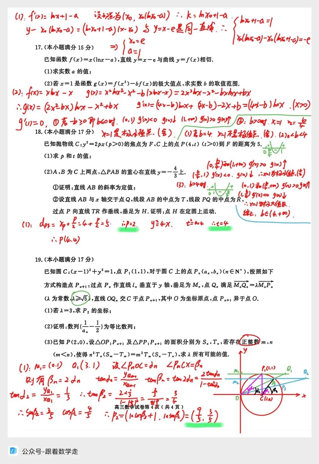 十七题,第二问其实还是极值点的分类讨论,和导数单调性分类讨论类似,分类讨论标准要非常熟练,第一,零点存不存在,第二,零点在不在定义域内,三,多个零点比大小