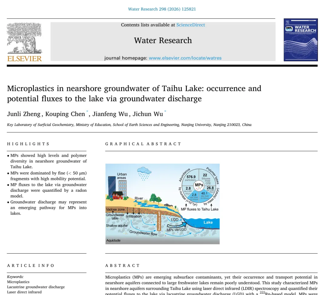 目前,在喀斯特地貌、火山岛、冲积含水层及饮用水源地等多种水文地质环境中均已检出地下水微塑料,报道的丰度跨越数个数量级(0.48至6832颗/升),但在人口密集、人类活动强烈、地下水与湖泊水力联系紧密的湿润冲积平原地区,系统性研究仍十分匮乏。在此类环境中,湖泊地下水排泄(即地下水向湖泊的弥散性、持续性汇入)对湖泊水量平衡与水化学动态具有重要影响,可能是微塑料进入湖泊的一条被忽视的途径。